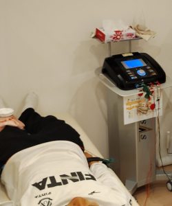 1.休むだけでなく、エレサスブラックでの微弱電流治療で患部の回復を促す